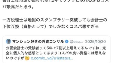嫌儲 X民「会計士は1.2年でサクッと取れるからコスパ最強。税理士試験は地獄なのに会計士の下位互換資格でコスパ悪すぎ」
