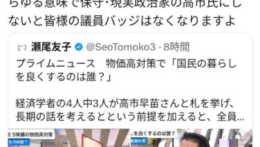 嫌儲 ほんこん さん「経済対策なら高市早苗さん。経済学者も4人中3人がそう答えてる。これは事実」