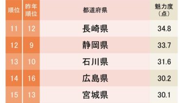 嫌儲 魅力度ランキング2025、「埼玉県」最下位。観光魅力度3年連続、食魅力度6年連続最下位
