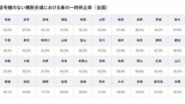 嫌儲 「信号機のない横断歩道」の自動車停止率ランキング、山口県が最下位!もしかして山口県って民度低いの??