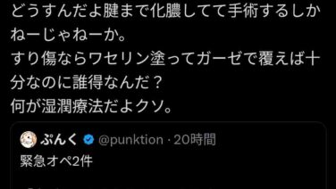 嫌儲 医者「キズパワーパッドはやめとけ!細菌培養工場だし化膿して壊死するぞ!」