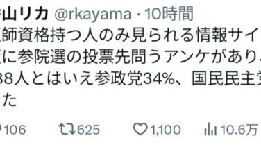 嫌儲 お医者様の3割は参政党に投票する(ソースは香山リカ)