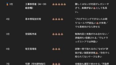 VIP 国家資格💩ランキング(by chatGPT)