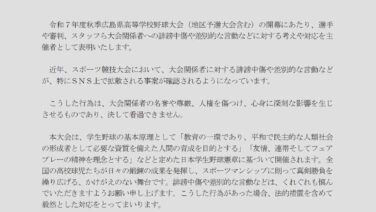 なんG 広島高野連「誹謗中傷は許さない。法的措置する」