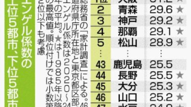 嫌儲 エンゲル係数、37都市で歴代最高値。原因は何?安倍晋三「食のレジャー化」
