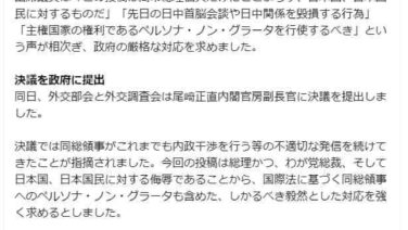 嫌儲 【サナ悲報】自民党「ペルソナ・ノン・グラータを含めた対応を行使するべき」中国の総領事の不適切投稿を受けて決議を採択