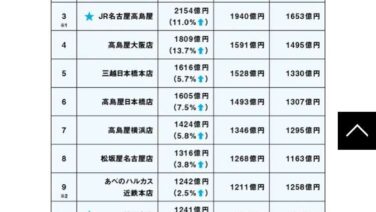 嫌儲 【画像】日本全国「百貨店」売り上げランキング。お前らがよく行くところはあったかな?