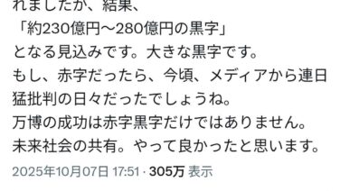 嫌儲 吉村知事、ウイニングランをかます「もし万博が赤字だったらメディアから連日叩かれたでしょうね。やって良かった、ありがとう」