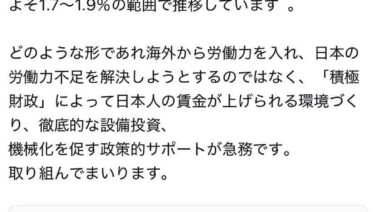 嫌儲 参政党おさや「外国人依存ではなく積極財政で賃上げを」