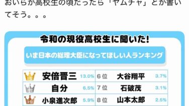嫌儲 Z世代高校生が選んだ総理大臣になってほしい人ランキング、安倍晋三が堂々1位www