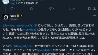 嫌儲 (ヽ´ん`)「Grok!こいつを論破しろォ!」Grok「あのさぁ…」