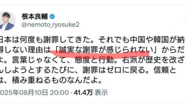 嫌儲 【正論】元つばさの党幹事長の根本良輔氏、「中国や韓国がいまだに日本を赦さないのは誠実さがないから」