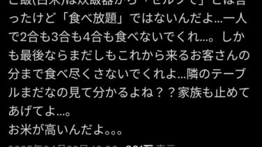 エッヂ 温泉民宿「ご飯の『セルフで』は『食べ放題』って意味じゃないんだよ、バクバク食うのやめてくれ」→Xで議論になる