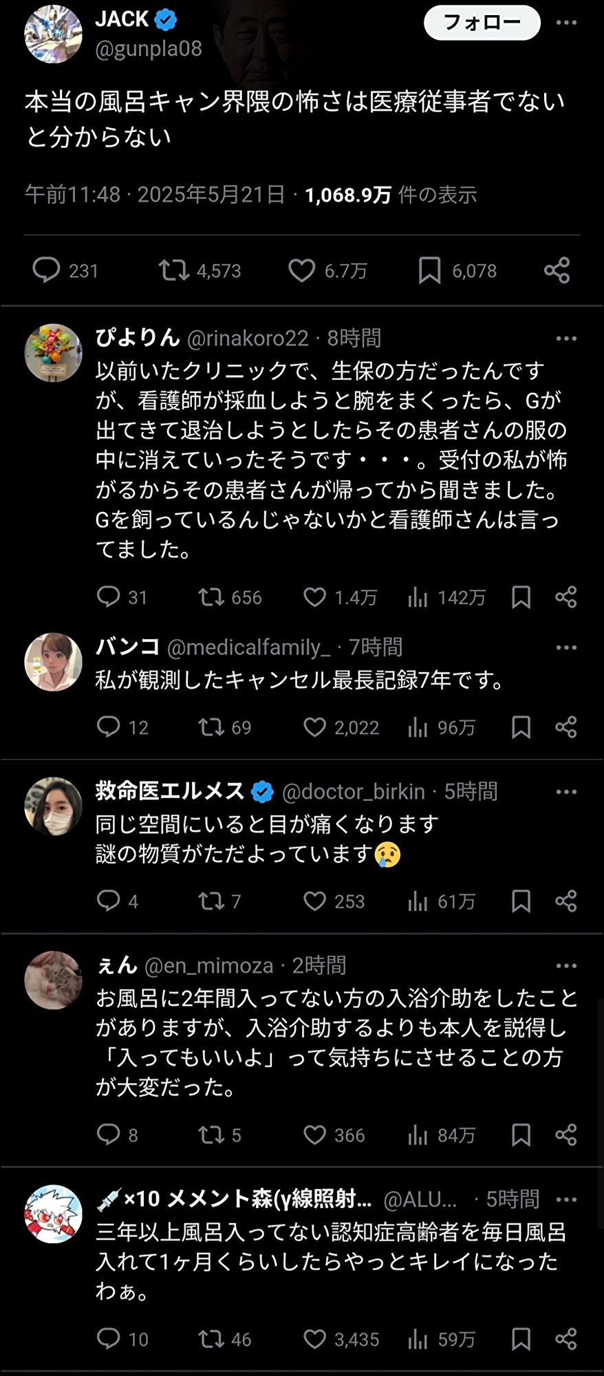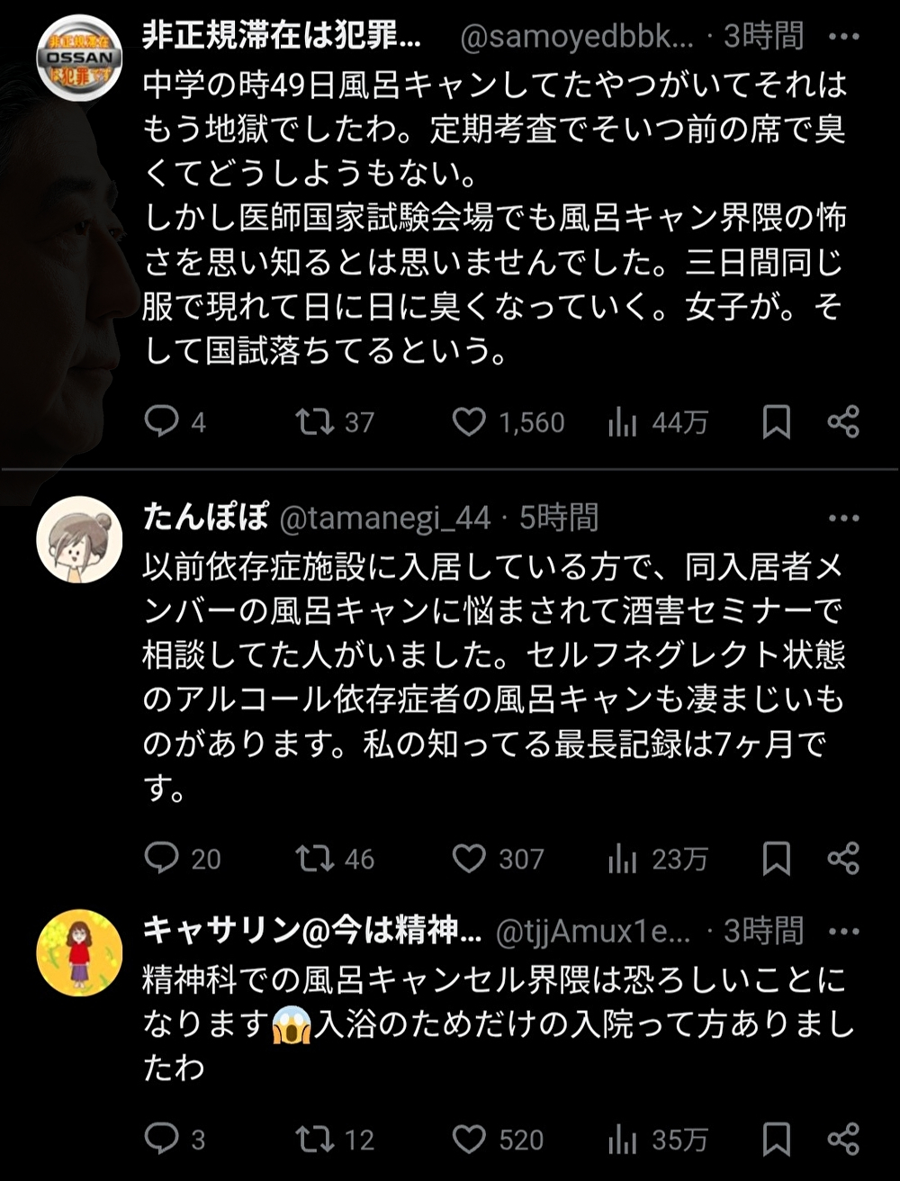 それはキャンセル界隈ではなくそもそも風呂なしの連中だろう