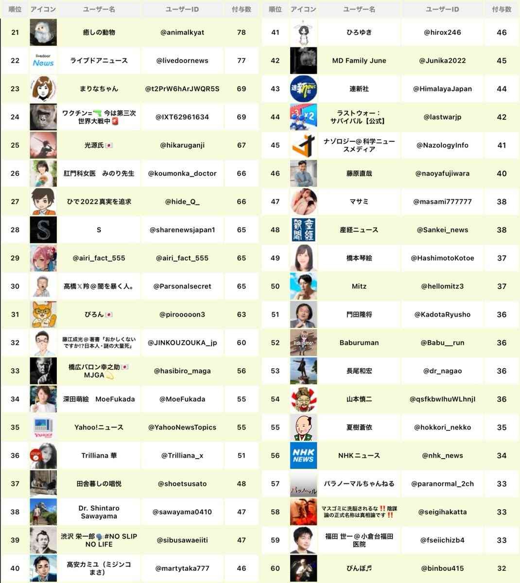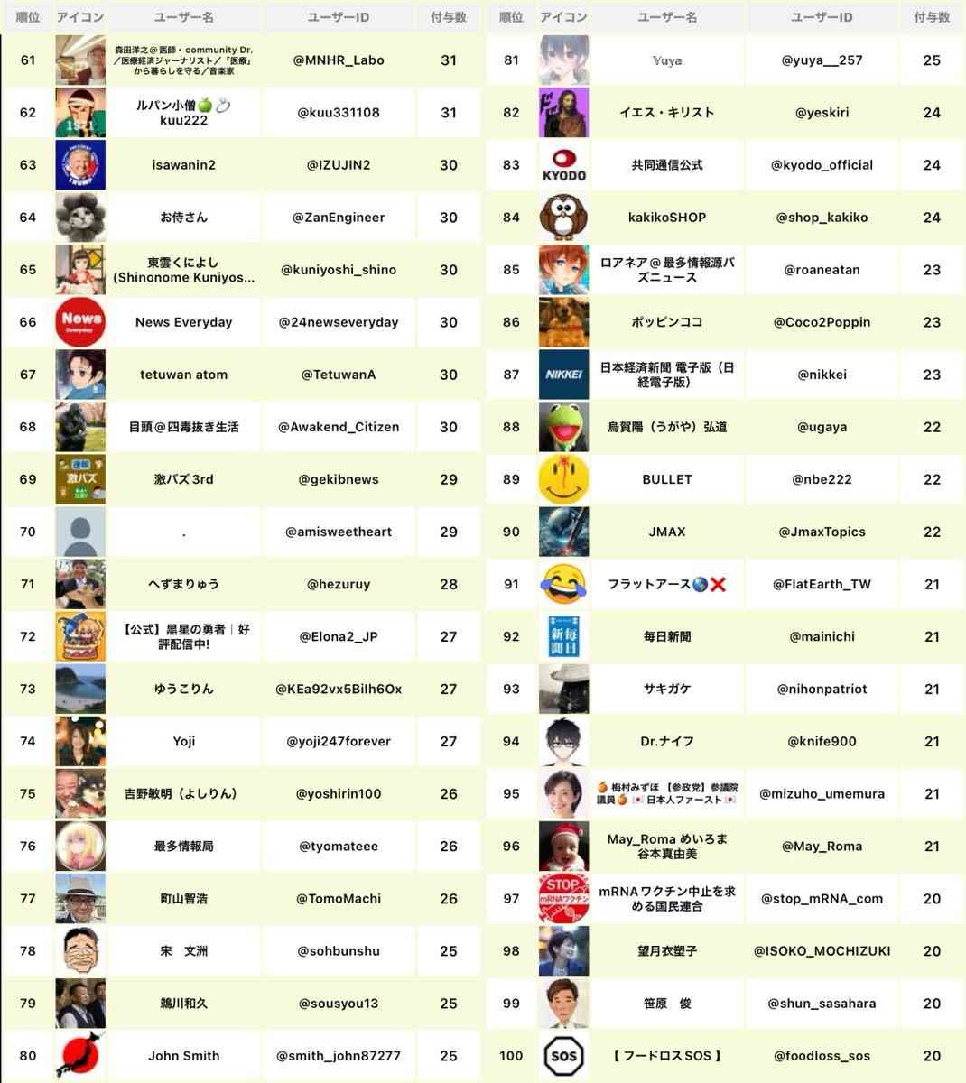 - 転載botが上位なのは分かるけど陰謀論者率高すぎだろ
