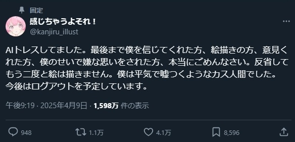 絵描きなら黙認されていただろうけどAIならする意味ないし - 28 : 2025/04/11(金) 10:55:02.386 ID:fafNL8jO0