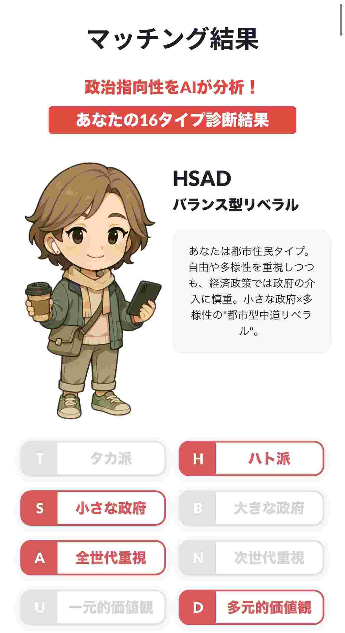 Z世代に人気なMBTI診断によく似た感じの投票すべき政党診断が発見される!